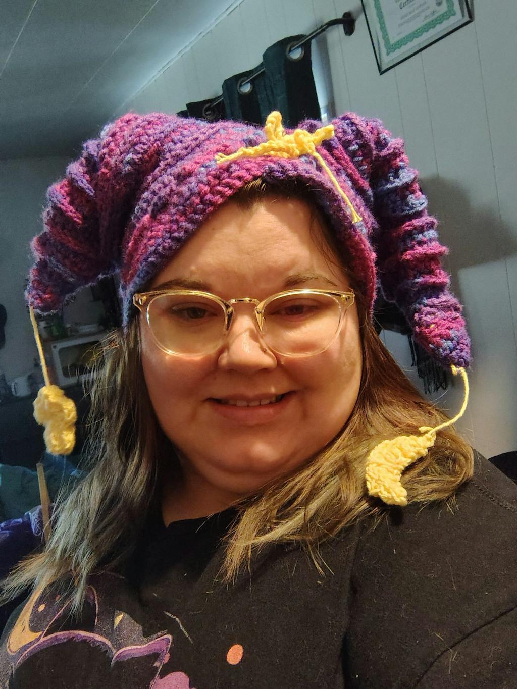 I may have not completely follow the pattern to make the second cone, in my sleepy state but I think it came out beautiful regardless 🤣 I also added a moon and star with crochet ribbon around.